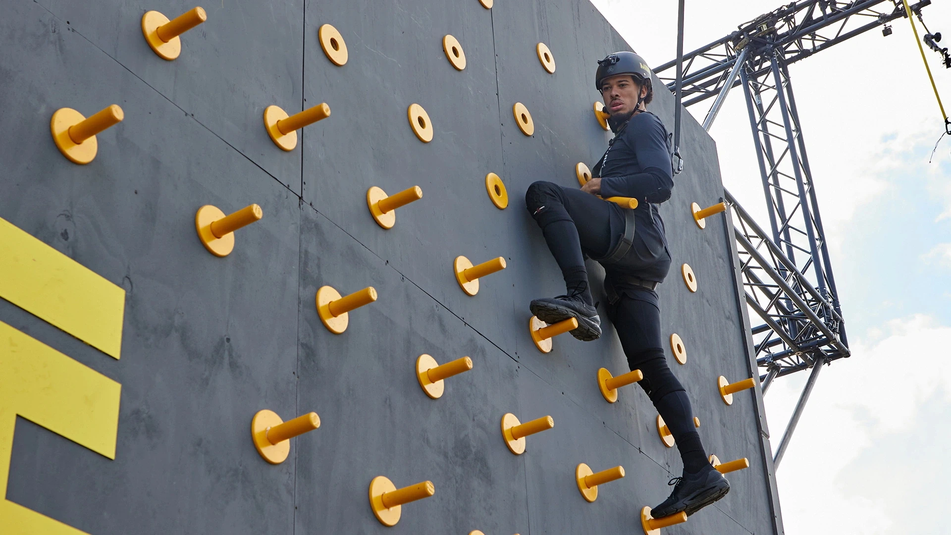 Teams will climb across the side of a truck with pegs. One teammate will start with the larger green peg, which must be used to hit a pot dangling alongside the other end of the truck. The teammates must meet in the middle, hand off the bar, and then travel across to hit the pot that is dangling. All of this must be done in under three minutes. The team to get it done the fastest will win, while the slowest to get it done or the team to make it the least distance will be sent into the arena.